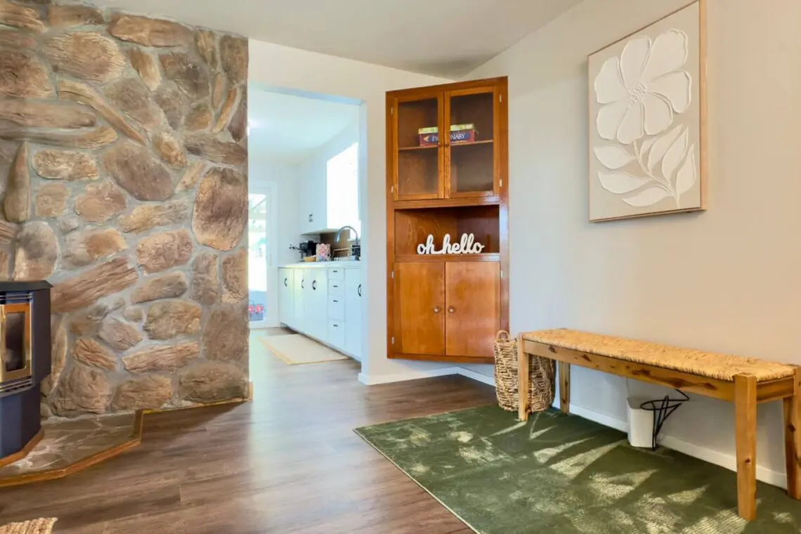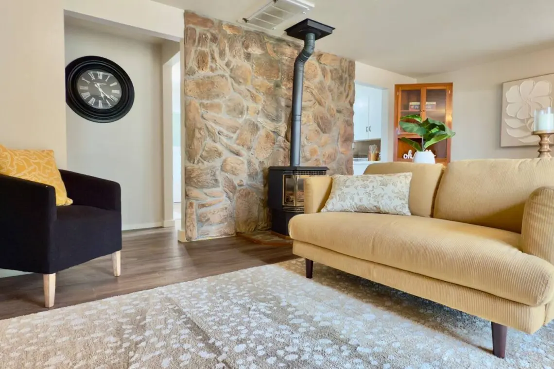 Charming 2-bedroom, pet-friendly home for 4. Features a cozy stone fireplace, fully equipped kitchen, and a private fenced yard with a covered patio. Enjoy modern comforts like Wi-Fi & smart TVs. Located in a wonderfully walkable neighborhood with easy access to local restaurants, markets, and coffee shops. Ample on-site parking included.